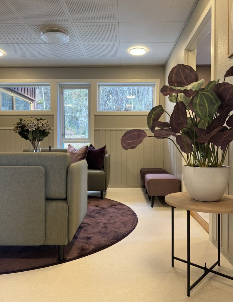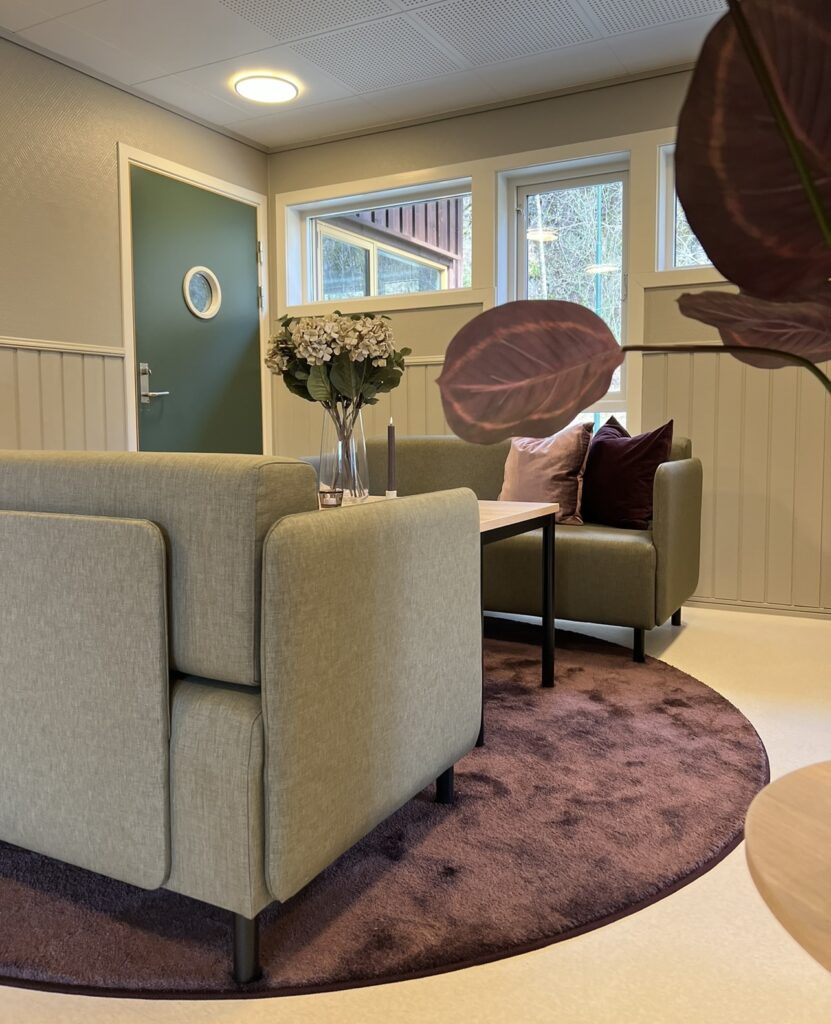 Et godt innemiljø kan gjøre underverker for trivsel og helse. Her viser vi før- og etterbilder fra en nylig renovering av stuen i et folkehelsehus – et rom som nå inviterer til hygge, samhold og aktivitet. Kanskje vi kan hjelpe dere også?