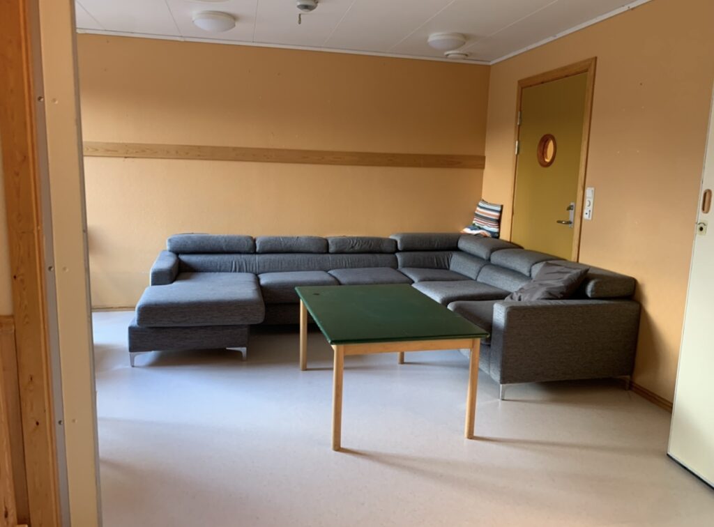 Før renoveringen var stuen lite tilrettelagt for de ulike aktivitetene som finner sted i et folkehelsehus. Det manglet fleksibilitet i innredningen, og rommet føltes mørkt og trangt, noe som påvirket bruken negativt.