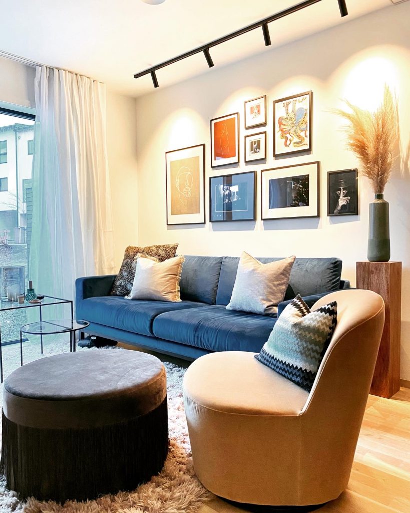 Her er et utdrag fra et av mange prosjekter vi har hatt. Vi har bistått med møbler, pynt, farger, gardiner, montering, belysning og oppheng av bilder. 🙂